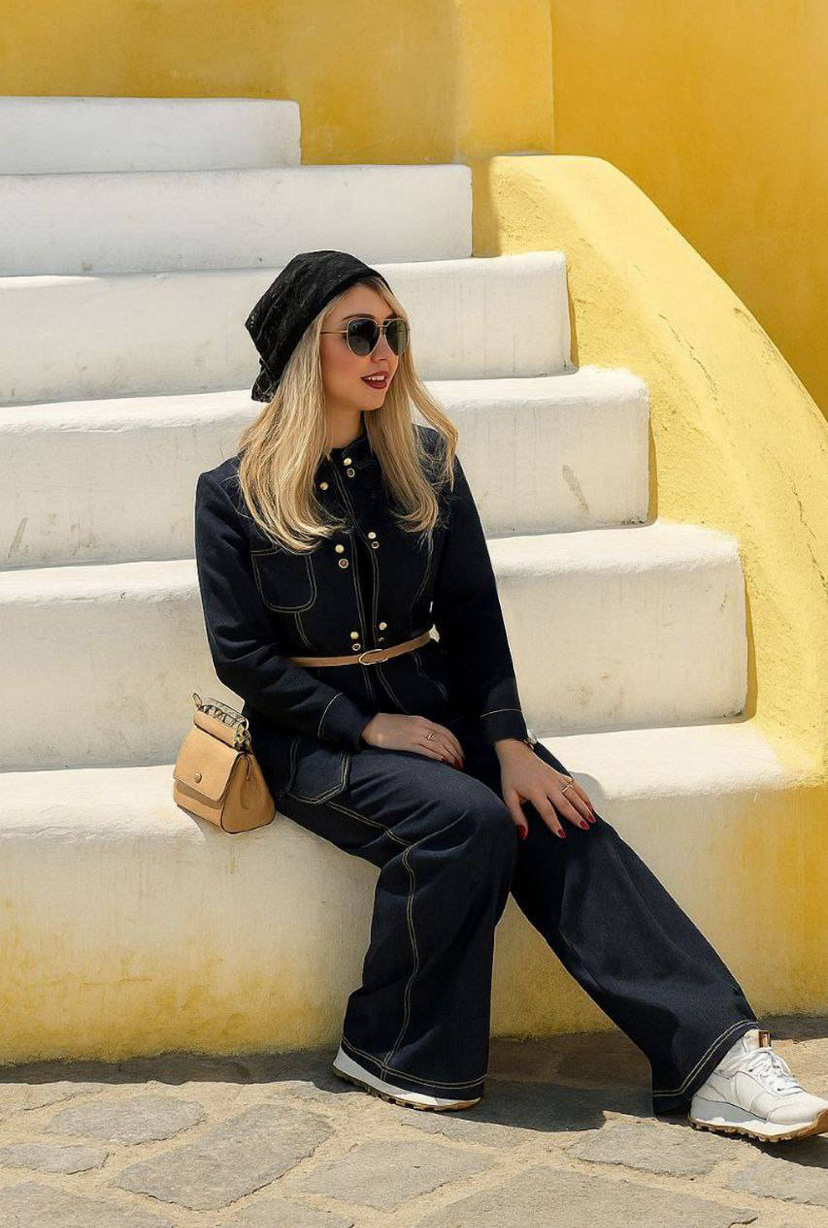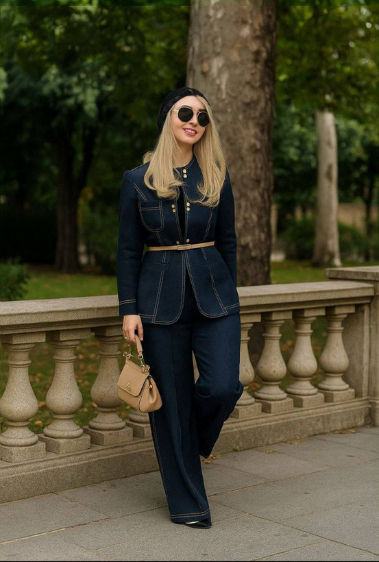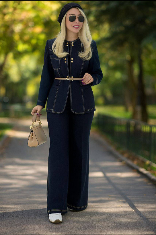 جلو شلوار زیپ و دکمه و پشت شلوار کش دارد