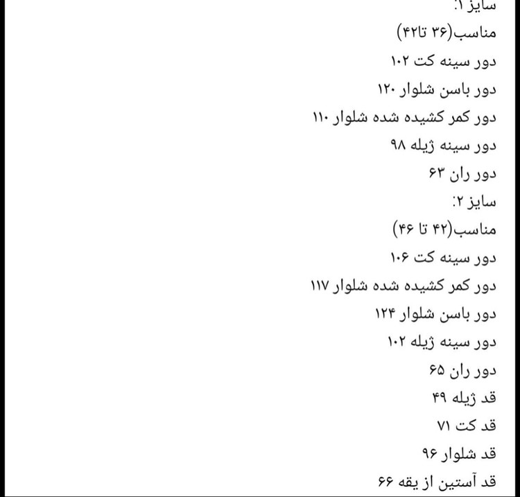 🟣 سایز بندی 40تا46